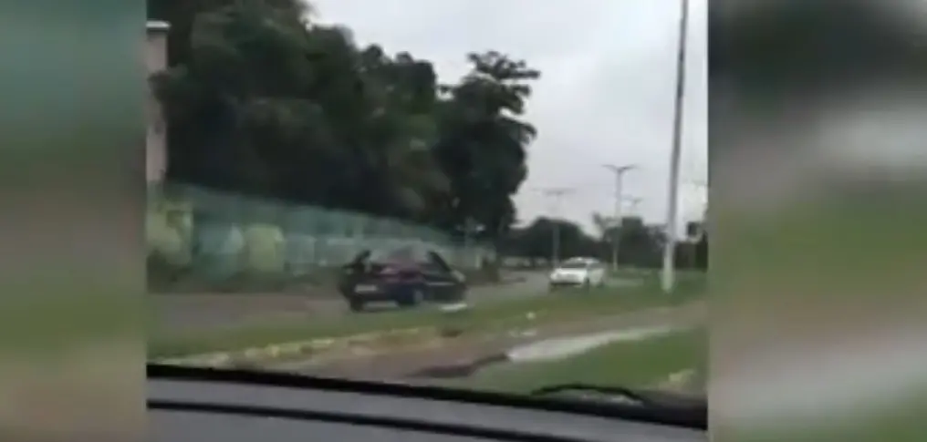 Em vídeo gravado por uma passageira de outro veículo que trafegava pela via, o carro, um Siena de cor preta, aparece no sentido Fortaleza-Eusébio, em alta velocidade, e quase colide com um veículo de cor branca em uma das curvas da via.