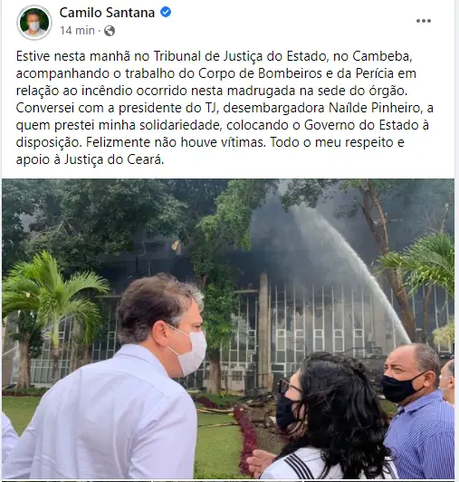 O governador informou que o Centro de Eventos do Ceará está à disposição para acomodar de forma provisória o funcionamento do TJCE, mas que esta decisão será tomada após o término do trabalho dos bombeiros.