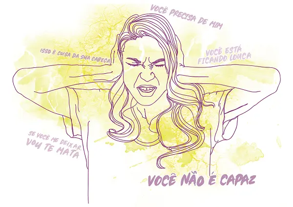"Ele dizia que ia pisar na minha cabeça. Falava que ia me machucar, marcar meu rosto pra eu lembrar sempre que olhasse no espelho. Dizia que ia quebrar meus dentes dando um tiro na minha boca", conta. Ela foi chamada de incompetente e chegou a duvidar do amor da própria família, sob influência do agressor.