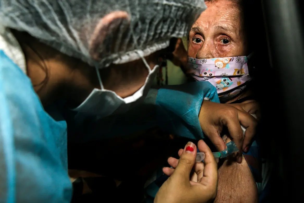 Uma das que espera a segunda dose em Fortaleza é Marcelina Alves de Araújo, de 97 anos. Ela tomou a primeira dose da AstraZeneca no dia 11 de fevereiro, mas, desde 12 de maio, está com o imunizante atrasado. “Ela tem direito de receber em casa, mas, até agora, nada”, lamenta a filha, Socorro Araújo.