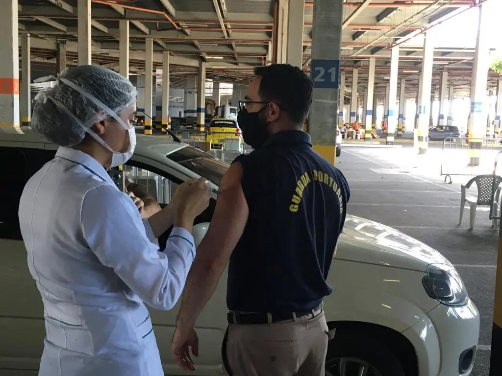 Trabalhadores do Porto de Fortaleza começaram a ser vacinados contra a Covid-19 nesta terça-feira (1º). O primeiro grupo foi atendido no drive-thru da Arena Castelão, recebendo a 1ª dose da vacina AstraZeneca/Oxford. A meta é imunizar 800 profissionais ao todo.