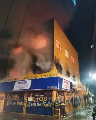 Prédio corre risco de desabar após incêndio em comércio no Planalto Ayrton Senna, dizem bombeiros