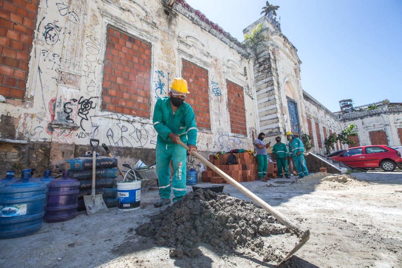 No local, pedreiros trabalham tampando os acessos ao prédio que é tombado definitivamente pelo Decreto Municipal n° 12.303/2007. Nos últimos anos, o imóvel centenário chegou a ser ocupado, em distintas ocasiões, por famílias sem teto. As promessas de revitalização não são novas e ganharam ênfase desde que o imóvel foi considerado um patrimônio protegido definitivamente.