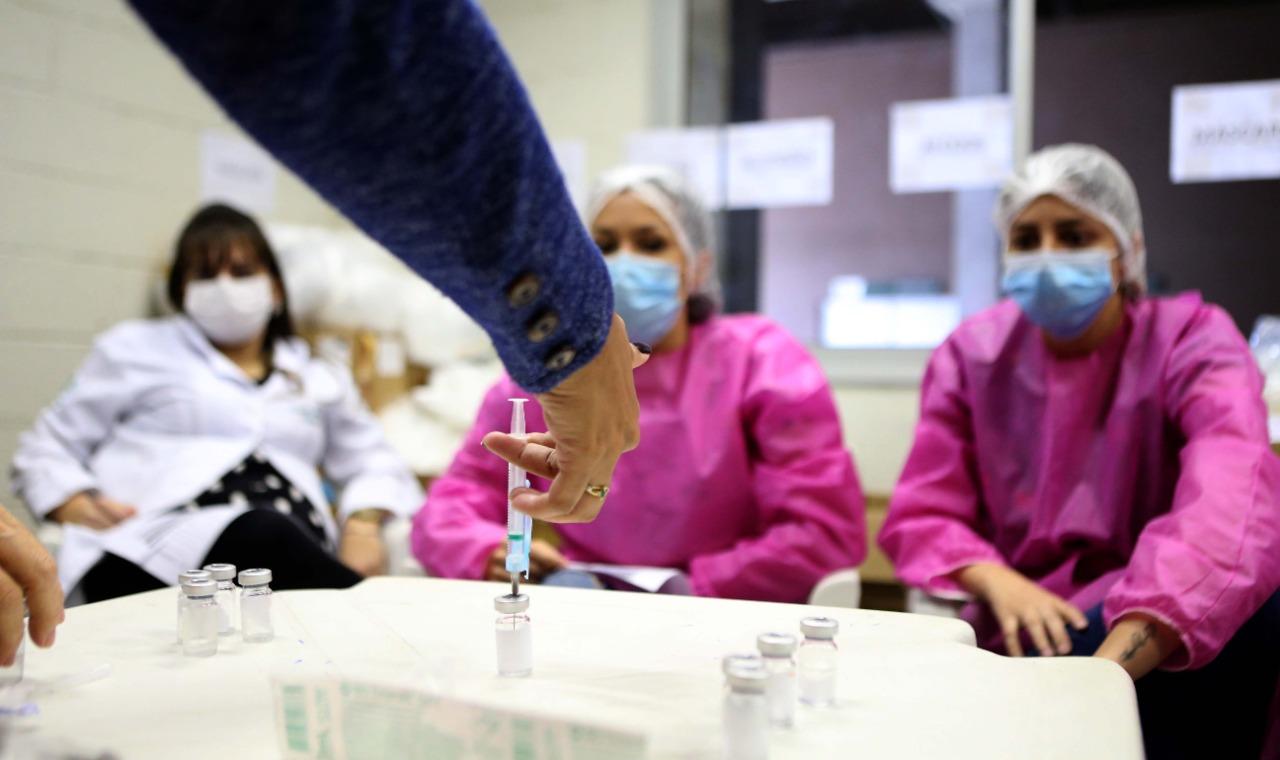 Profissionais de saúde são treinados para a aplicação da vacina da Pfizer em Fortaleza