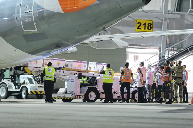Após o desembarque, quatro volumes foram enviados, em caminhão com escolta policial, à Central de Distribuição de Medicamentos da Secretaria Estadual da Saúde (Sesa).