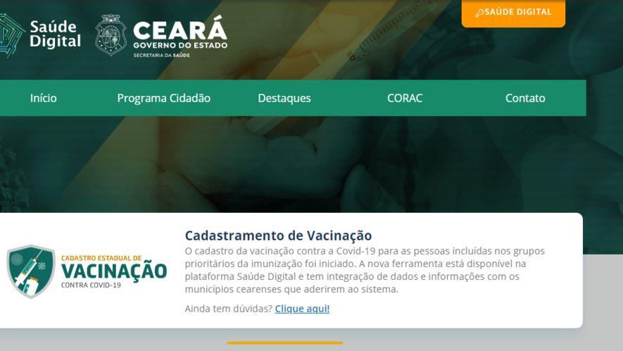 Site de cadastro para vacinação contra a Covid-19 no Ceará volta a operar normalmente