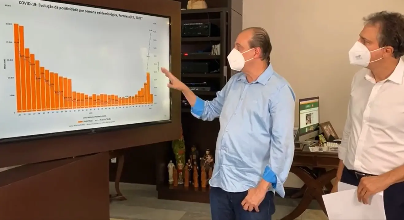 A taxa de positividade de testes para a Covid-19 no Ceará já se aproxima dos 45%, informou o secretário da Saúde, Marcos Gadelha, durante participação em live realizada pelo governador Camilo Santana (PT), na tarde desta sexta-feira (14).