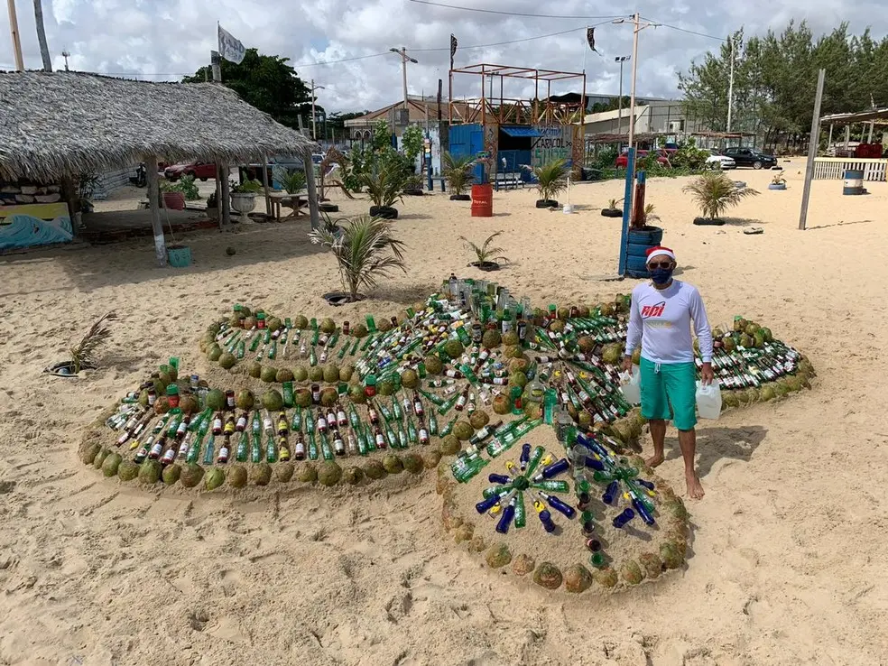 O descarte inadequado de resíduos sólidos nas faixas de areia nas lagoas, mares e rios traz impactos negativos irreversíveis à natureza. Para alertar contra esta realidade, o taxista Francisco Carlos da Silva, 59, usou materiais recicláveis recolhidos na Praia de Iracema e fez uma escultura em formato de tartaruga marinha, para chamar a atenção dos frequentadores do local, próximo à comunidade do Poço da Draga, em Fortaleza.
