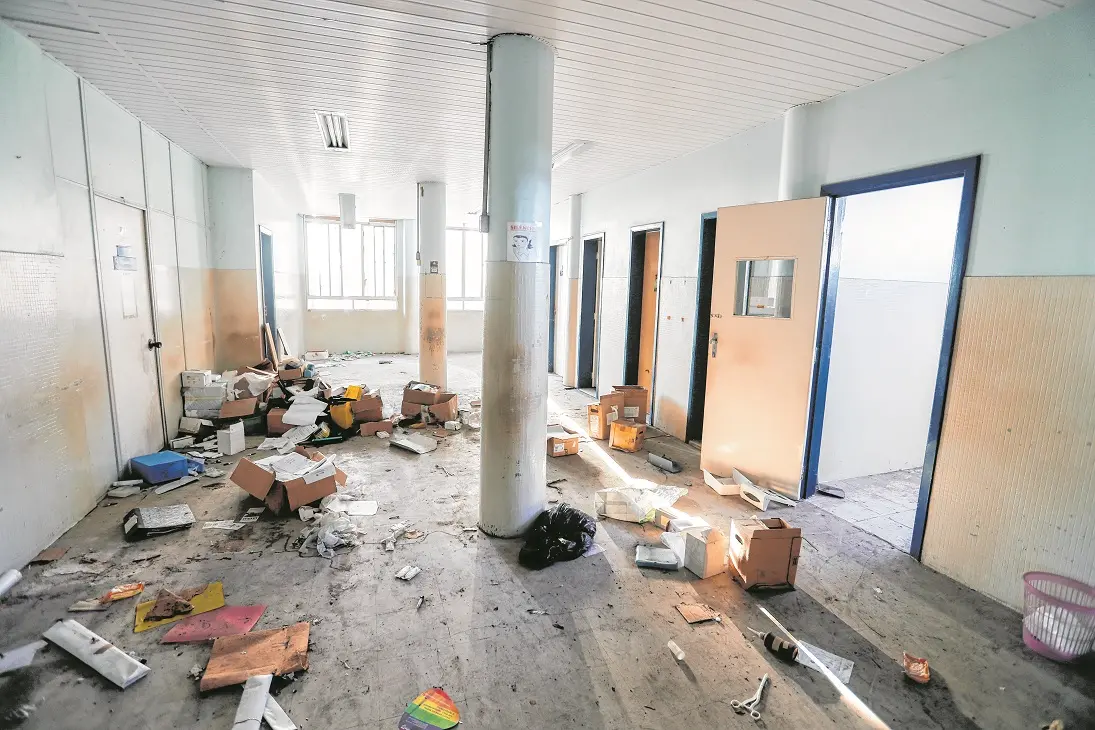 Mais de cinco anos depois, o prédio continua fechado, com um aspecto já distante de qualquer ambiente para tratamento de saúde. Pelo contrário: a poeira acumulada no chão, teto e paredes, misturada às penas soltas e carcaças de pombos espalhadas nas escadas somam possíveis causas para diferentes tipos de doenças.
