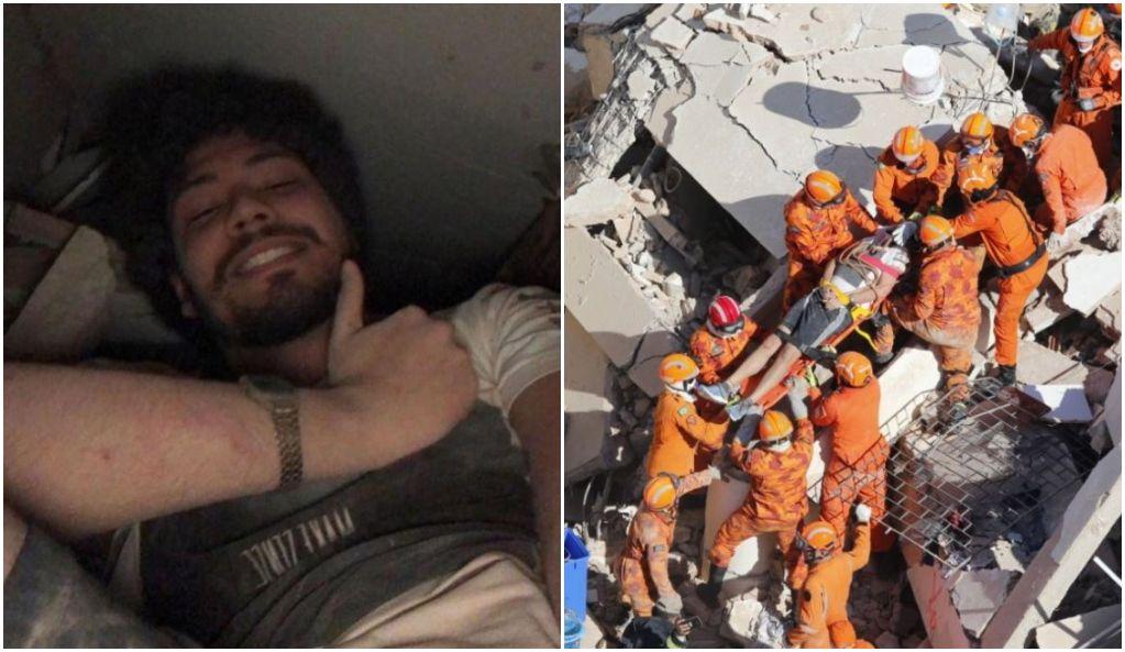 Universitário faz selfie antes de ser resgatado de escombros de prédio que desabou em Fortaleza