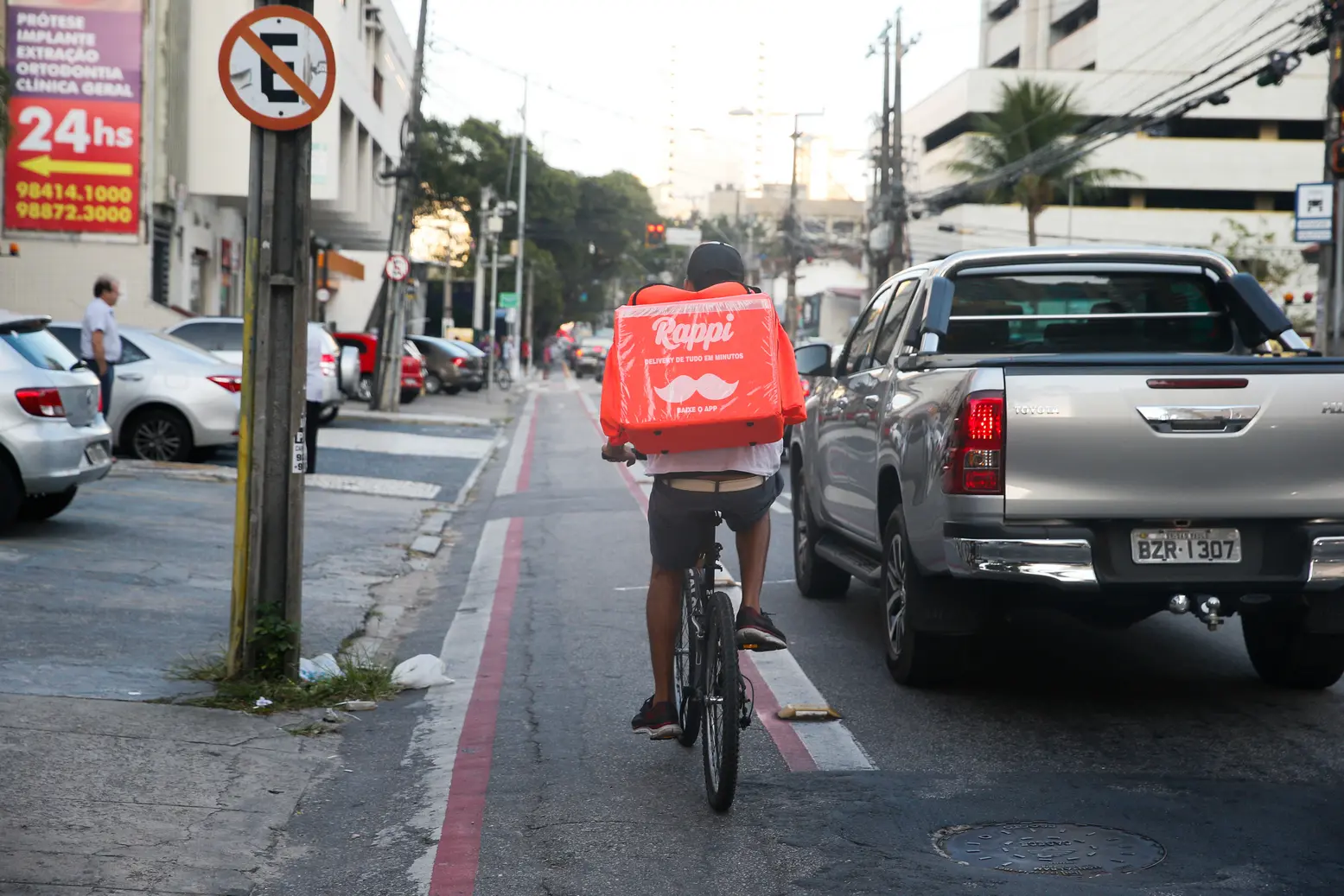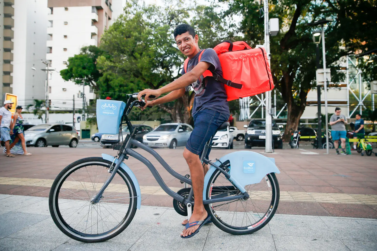 Trabalhar. Eis o verbo que rege o caminho de Joel Lopes, de 29 anos. Não fosse uma das magrelas disponíveis nas sete estações do projeto Bicicleta Integrada, instaladas nos terminais, o jovem não poderia sair às ruas para realizar as entregas solicitadas via aplicativos. Desempregado, enxergou nas plataformas digitais de delivery a "melhor oportunidade" para continuar a garantir o sustento dos dois filhos pequenos - um de três e outro de apenas um ano.