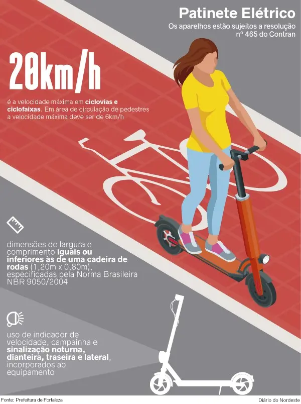 Práticos, ágeis, econômicos e não poluentes. As vantagens dos patinetes elétricos são muitas no contexto dos centros urbanos, fato que fez dos equipamentos os queridinhos de muita gente no País e mundo afora. Em Fortaleza, a expectativa é que o serviço de compartilhamento do modal comece em agosto próximo, segundo informou o prefeito Roberto Cláudio. Essa utilização, no entanto, deve seguir normas de segurança viária.