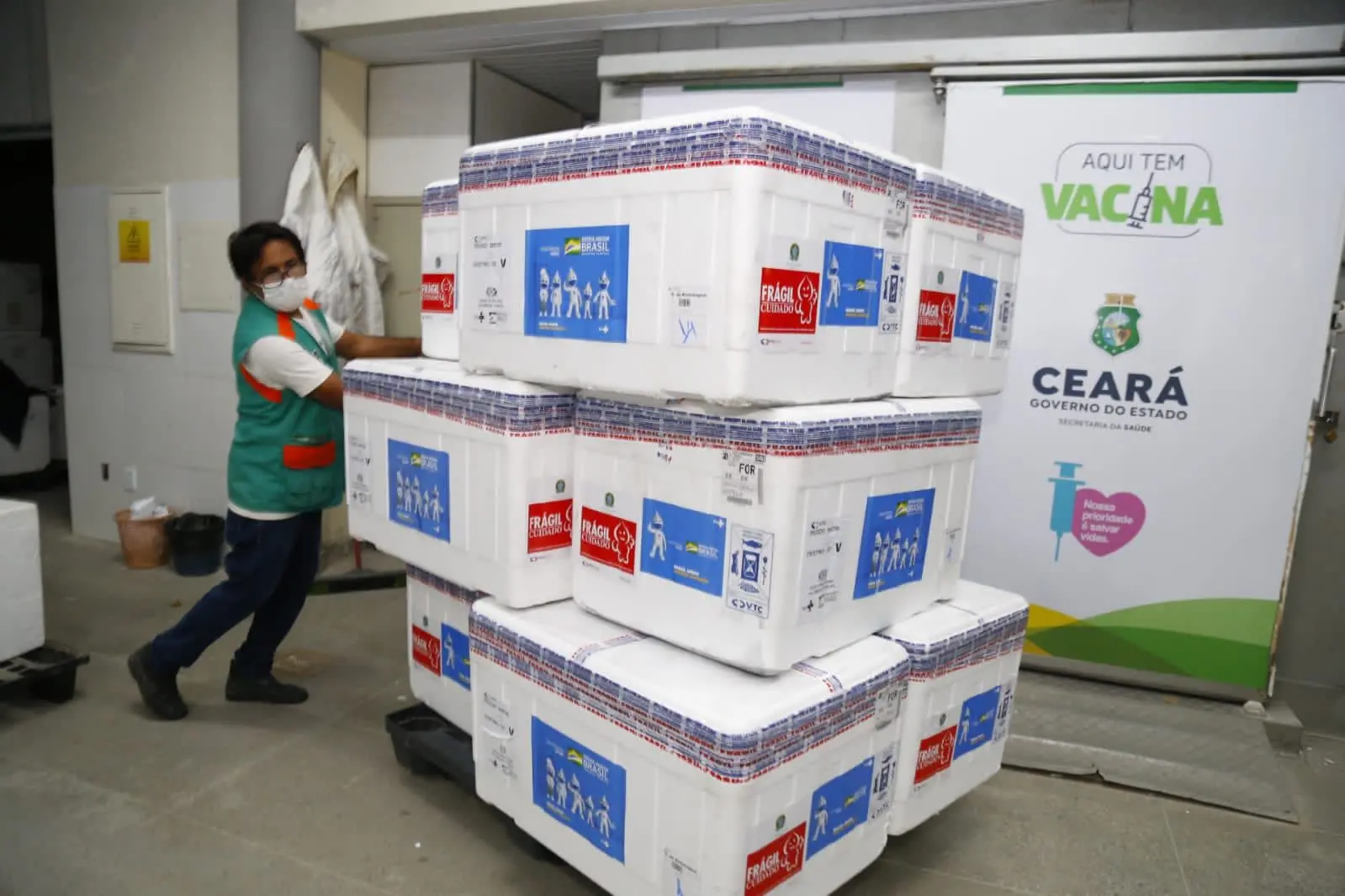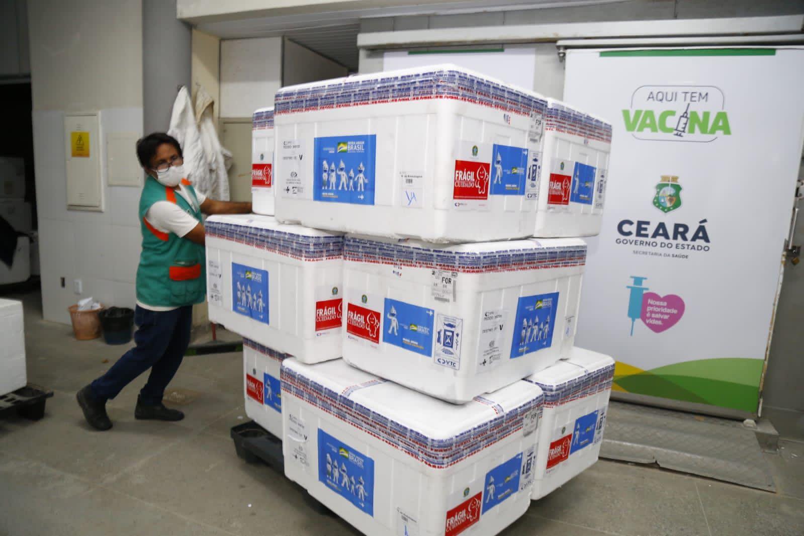 Agendamentos são para aplicação de D2 de Pfizer e AstraZeneca, além de dose de reforço. Nesta quinta-feira (5), chegaram ao Ceará mais 388,7 mil doses de vacinas