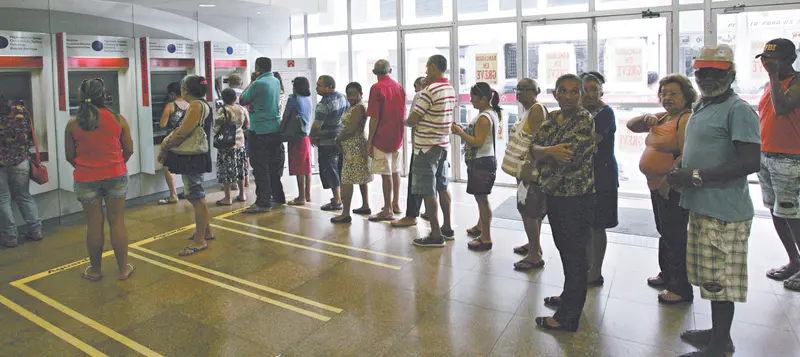 Legenda: Quem foi ao banco ontem teve que esperar um longo tempo em filas compridas para tentar realizar o serviço desejado