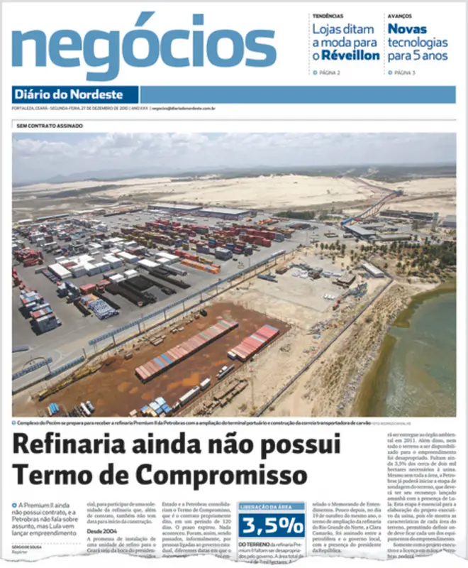 Legenda: Em 2010, o Diário do Nordeste lembrou que, dois anos depois da assinatura do memorando de intenções, o contrato da refinaria ainda não tinha sido assinado