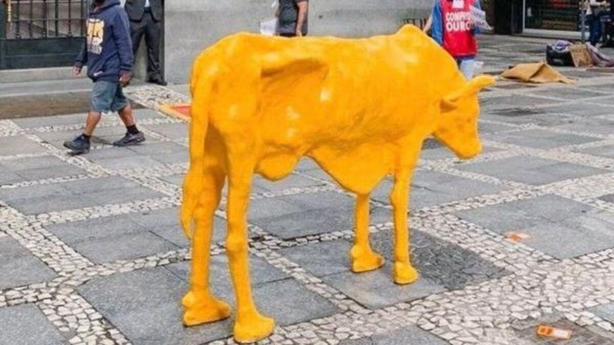 'Vaca magra' de artista plástica cearense é removida da calçada da Bolsa de Valores de São Paulo