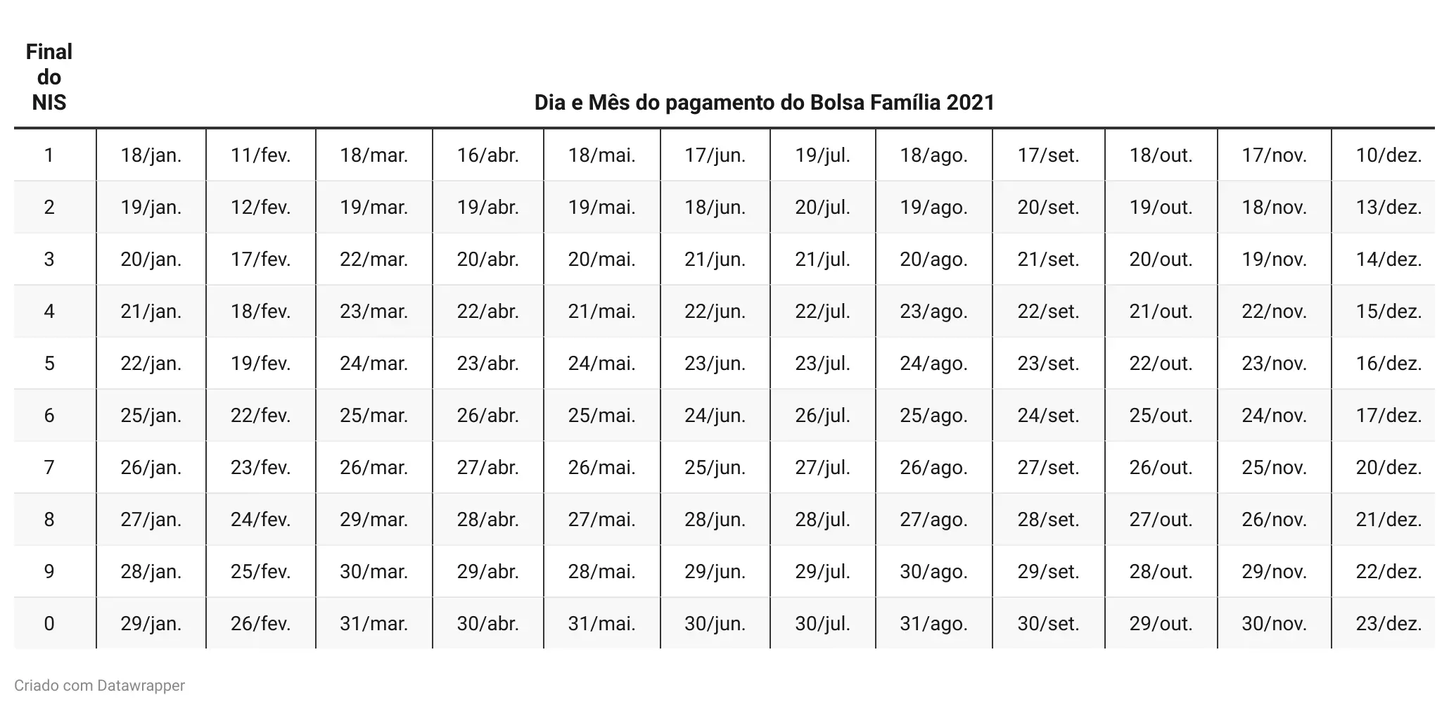 Veja o calendário para atualização dos dados