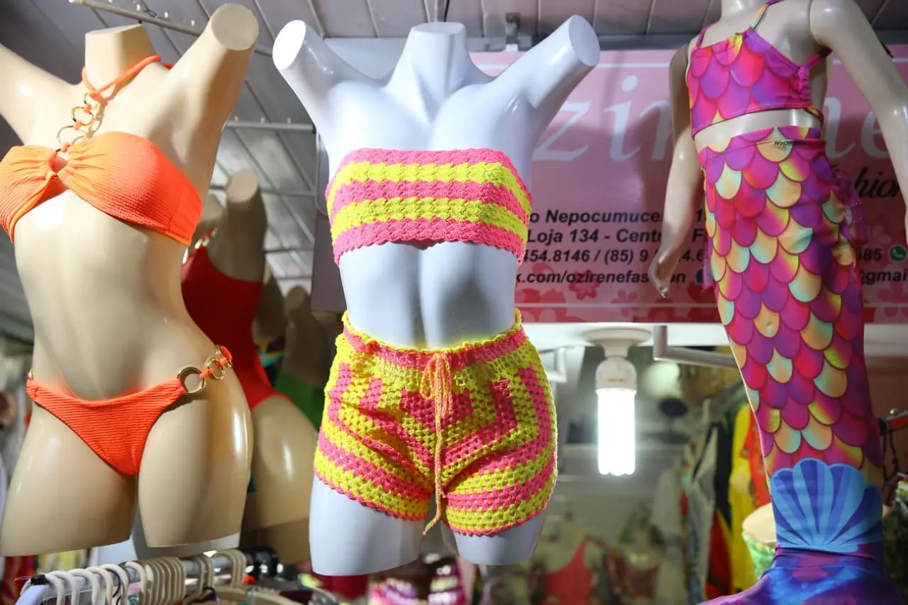 Aqui em Fortaleza, embora ainda não seja vendido o modelo igual ao de Jade, é possível encontrar biquínis de crochê a partir de R$ 80. Na banquinha do Seu Marcelo, localizada no primeiro andar do Mercado Central, o permissionário conta que a procura pela peça é grande. “São quatro dias pra produzir, no dia que a gente traz já acaba”.