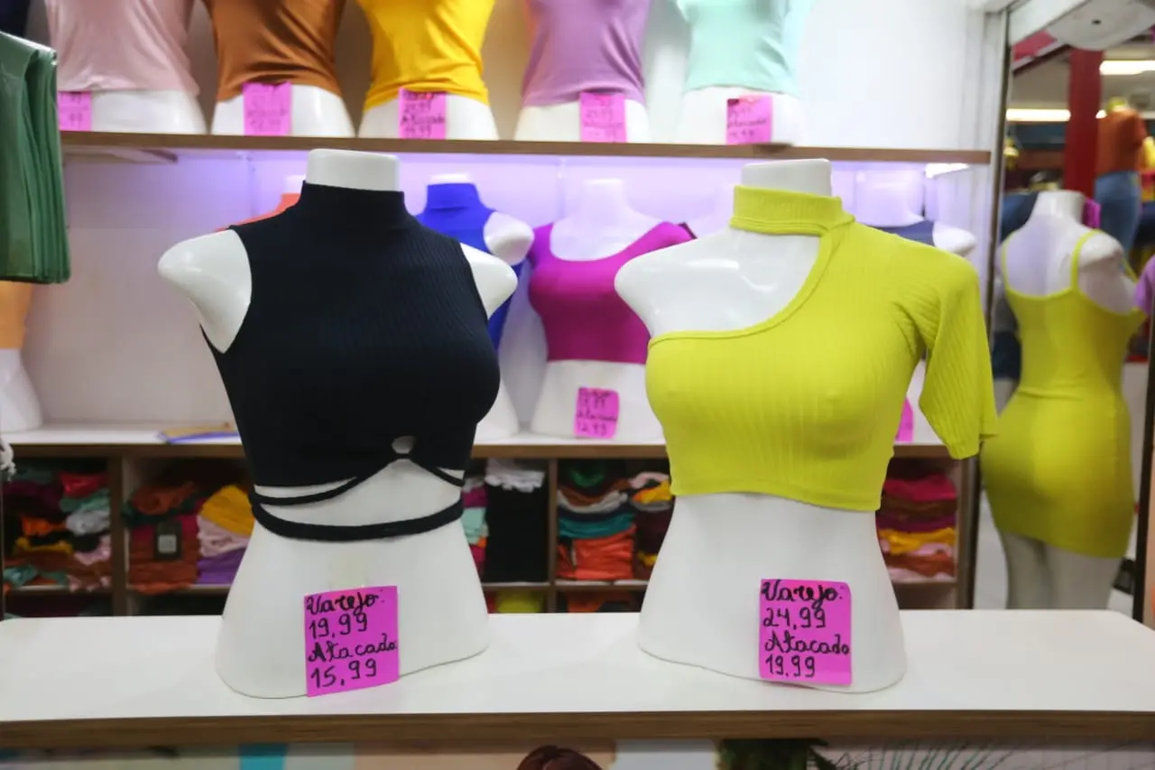 No catálogo da Marlu Store, localizada no Galpão Pequeno Empreendedor na José Avelino, as blusas, vestidos, saias e croppeds custam entre R$ 12 e R$ 25.