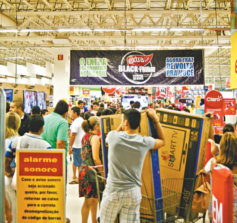 Legenda: Além do e-commerce, a Black Friday também aconteceu em estabelecimentos físicos de redes varejistas. No Iguatemi, o Extra ficou lotado de consumidores