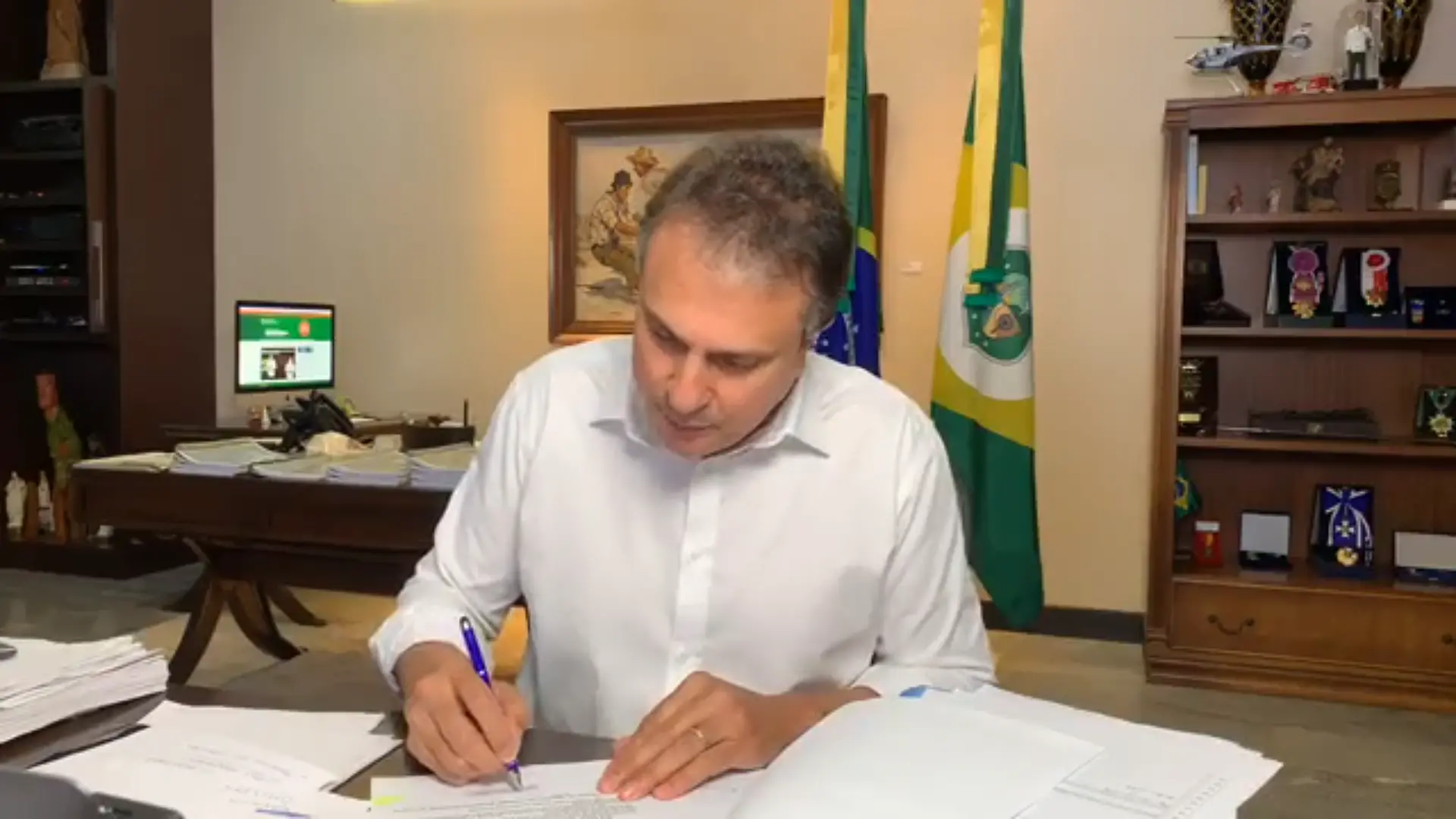 "Eu aproveito para sancionar o auxílio catador, que são trabalhadores que fazem um trabalho importantíssimo de coleta de lixo em todo o Estado. vamos dar um auxílio mensal, que valerá até o final do ano e esperamo que já no fim de agosto centenas de catadores já recebam o benefício", disse Camilo.