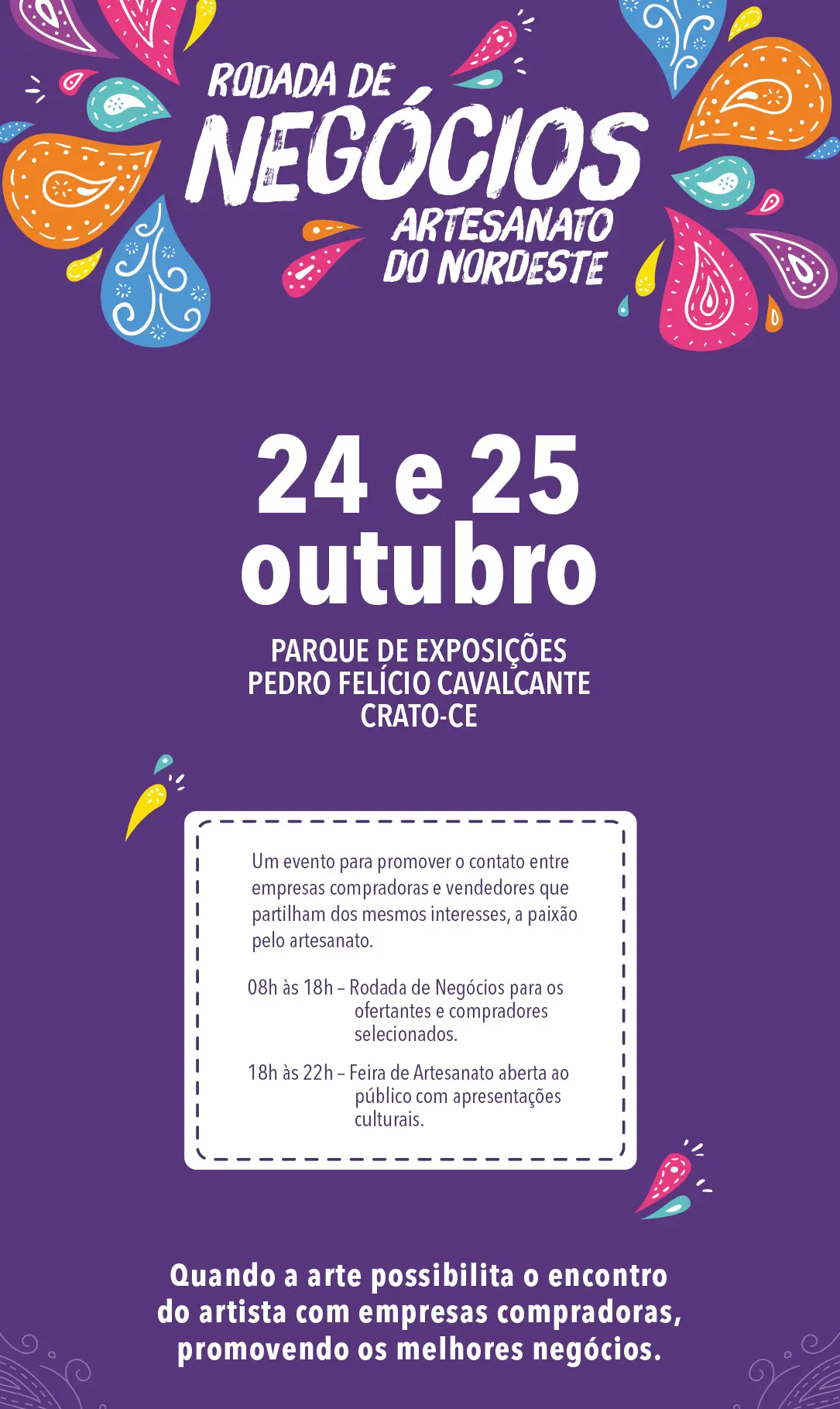 O evento é uma oportunidade para a população do Crato e de outros municípios da região do Cariri conhecerem um pouco mais da riqueza do trabalho dos artesãos nordestinos e de adquirirem produtos de diversas tipologias como trançado com fibra vegetal, couro, madeira, biojoias, bordados, crochê, renda, ouriversaria, xilogravura e cordel, entre outras.