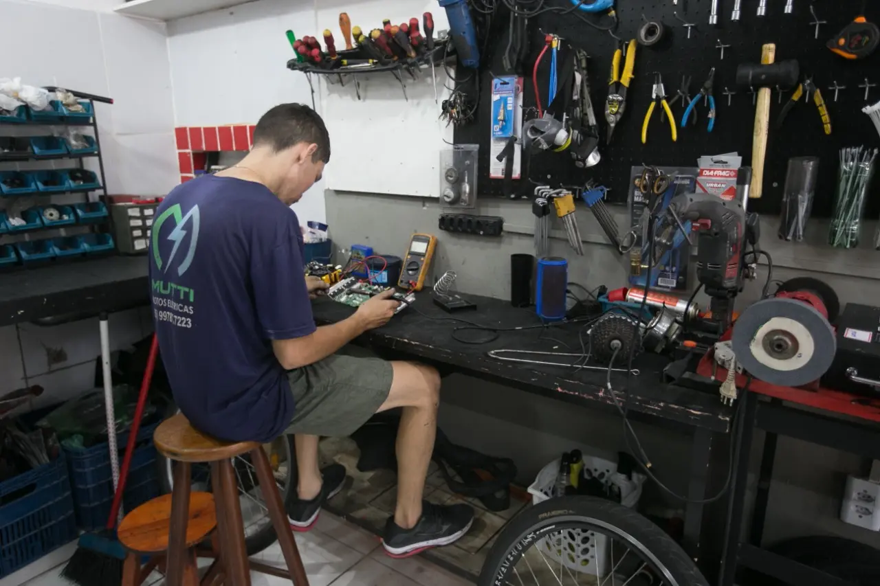 Max explica que a oficina, além dos clientes que adquirem equipamentos com a Multi, atende aqueles que compraram veículos elétricos com lojas de fora e não teriam de enviar para outro estado para conseguir realizar algum tipo de manutenção.