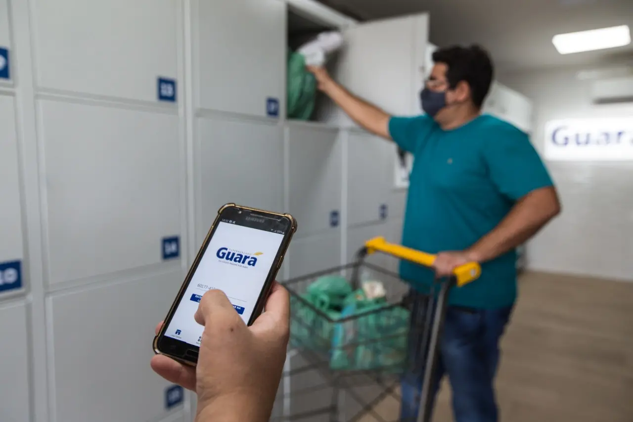 O projeto da rede de supermercados Guará de dar autonomia ao consumidor para retirar as compras feitas no aplicativo sem precisar da ajuda dos funcionários coincidiu com a necessidade do distanciamento social exigido pela pandemia. Segundo a analista de marketing da marca, Erica Catunda, a ideia já estava em andamento e foi acelerada.