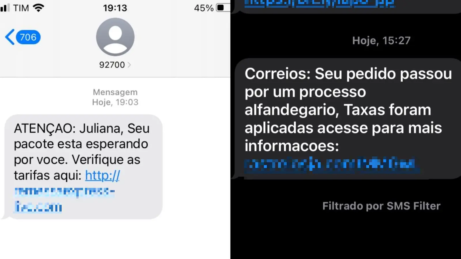 "Correios: seu pedido passou por um processo alfandegário, Taxas foram aplicadas, acesse para mais informações", diz uma mensagem enviada a um número de Fortaleza nessa quarta-feira (31).