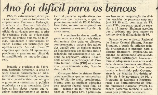 O banco faliu em um momento que foi difícil para outras instituições financeiras frente à chegada do Plano Real. Reportagem do Diário do Nordeste em 1995 apontava que 26 empresas tiveram dificuldades parecidas desde 1994.