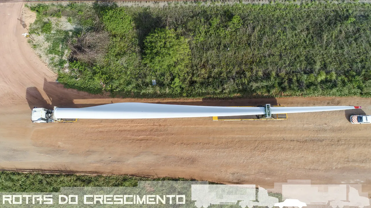 Sobre os veículos, a executiva detalha que são caminhões apropriados, cujo trem pode chegar a 54 metros para conseguir acomodar as pás e ter cerca de dez eixos para conseguir transportar os componentes mais pesados sem causar danos à malha viária.