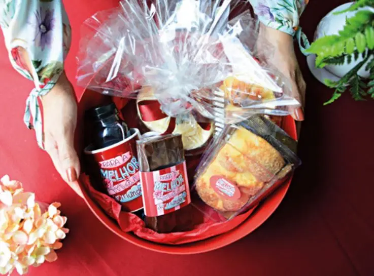 - Baú carinho: R$ 144,99. Contém torrada, pão brioche, patê, nescau, biscoito, caneca Costa Mendes, trufas, entre outros produtos;