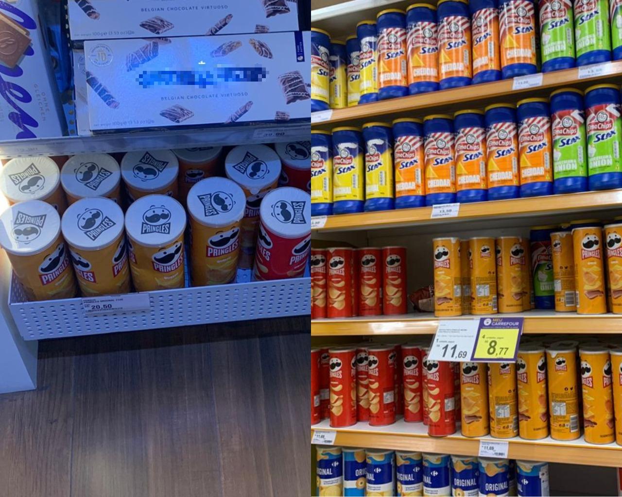 Foi o caso de uma batatinha chips, comercializada a R$ 11,69 em um supermercado e a R$ 20,50 em uma farmácia localizada dentro do Aeroporto de Fortaleza. Também foi observada uma diferença de 32% no chocolate, que foi visto a R$ 3,39 no supermercado e a R$ 4,50 em farmácias e padarias.