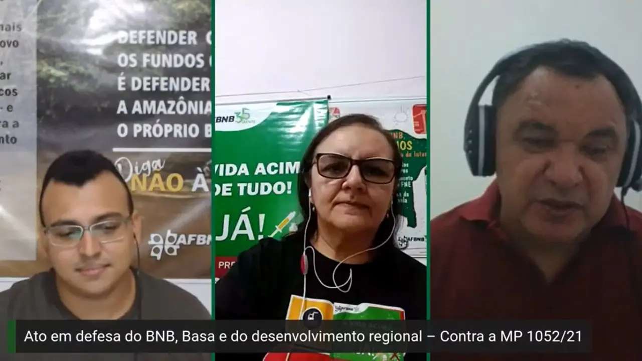 Preocupados com as possíveis consequências da Medida Provisória 1052/2021, a Associação dos Funcionários do Banco do Nordeste do Brasil (AFBNB) e a Associação dos Empregados do Banco da Amazônia (AEBA) realizaram ontem à noite (10) um ato virtual em defesa dos fundos constitucionais e dos bancos que operacionalizam estes recursos.