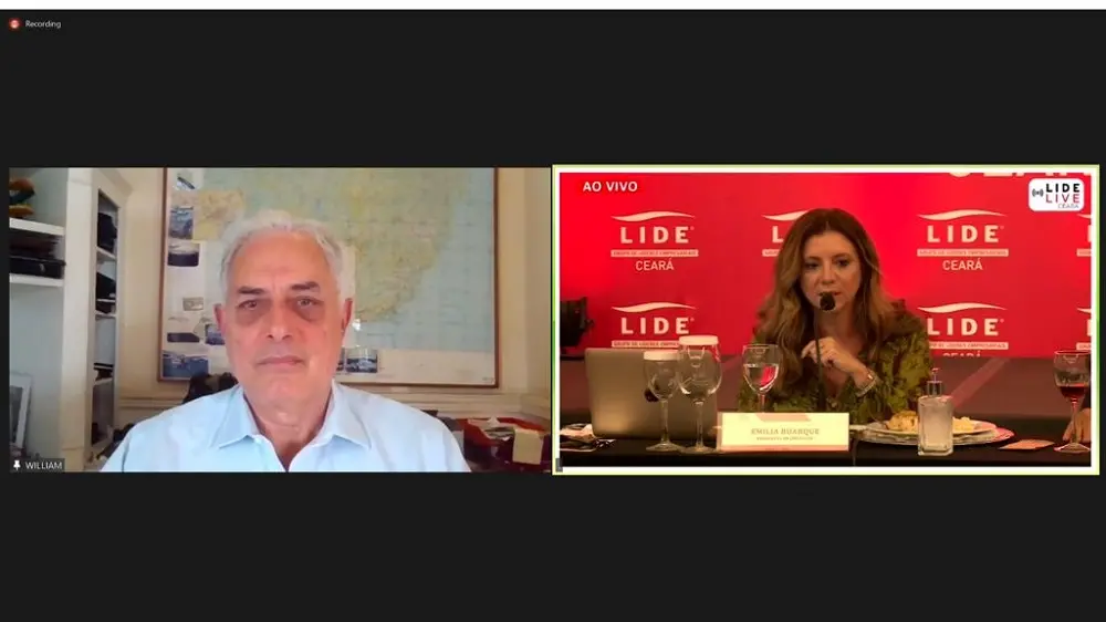 O jornalista, cientista político e escritor William Waack ministrou palestra, nesta sexta-feira (10), ao lado de Emília Buarque, presidente do Grupo de Líderes Empresariais do Ceará (Lide), intitulada “Cenário Político e Econômico: Brasil e seus Desafios”. O evento, que ocorreu de modo híbrido, é realizado no Ceará.