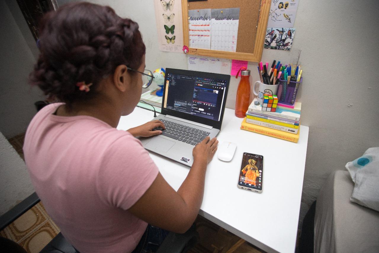 Ao longo de 2022, a jovem continuou se capacitando, realizando o último curso em agosto. Três meses depois, conseguiu emprego como web designer.