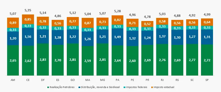 Componentes do preço do diesel cobrado na bomba
