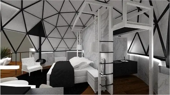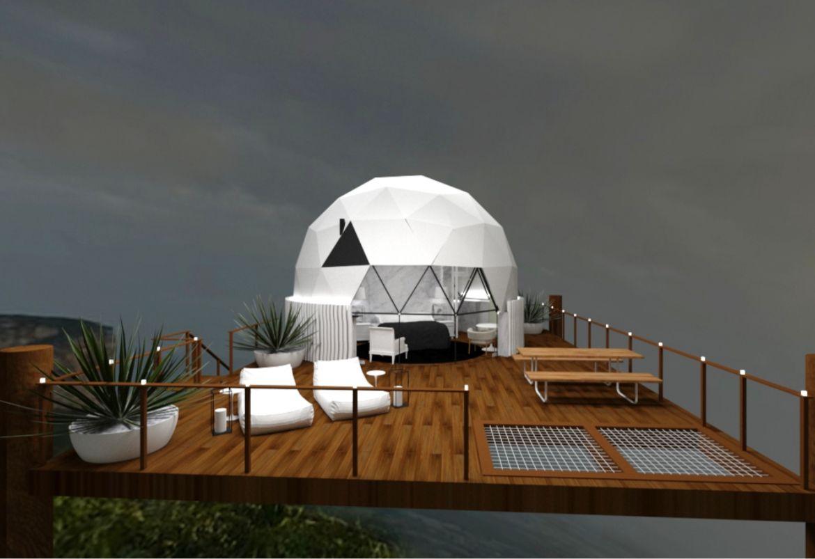 O Dom Luxury vai contar com sete domos geodésicos para hospedagem mínima de duas diárias e equipados com camas king size e banheiros. O glamping tem vista para um cânion da serra.