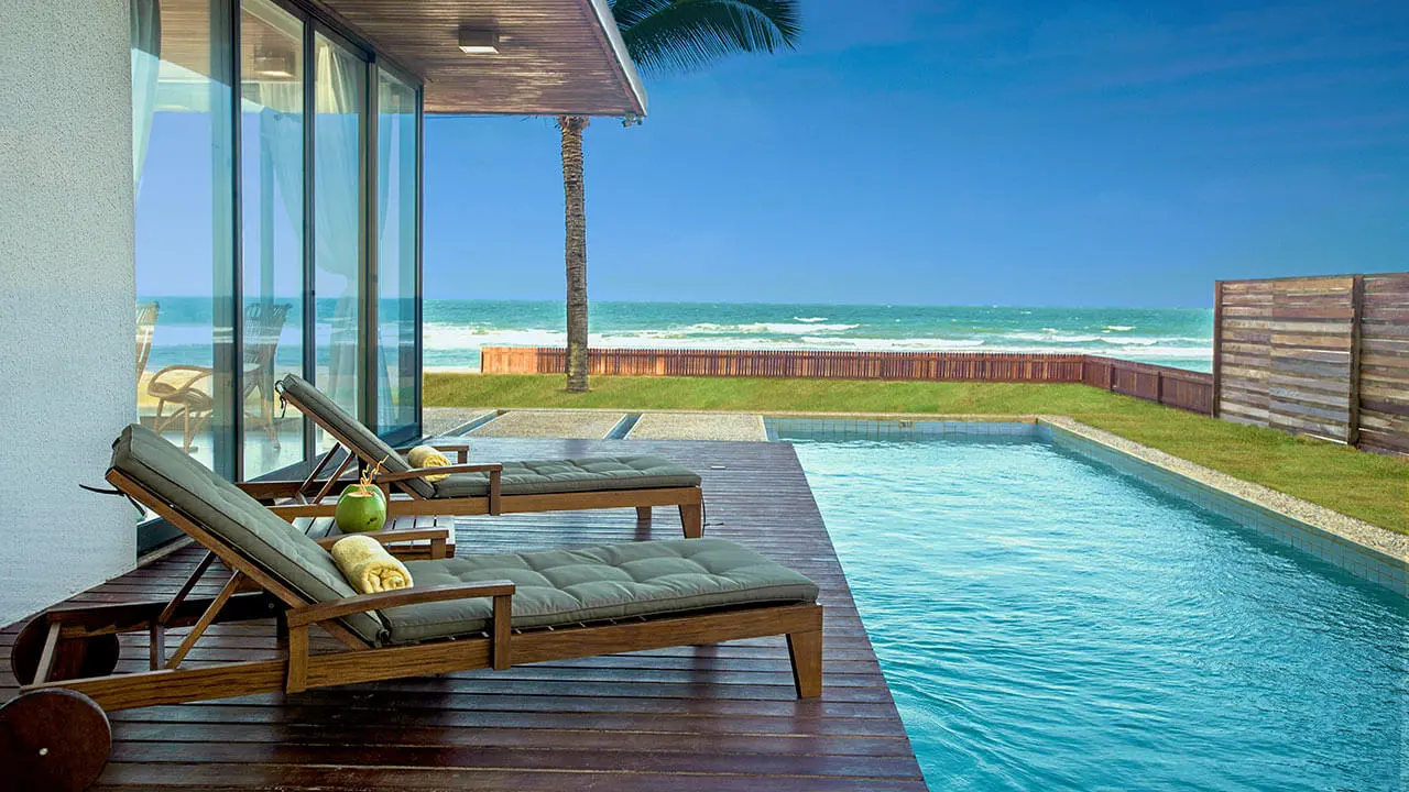 Localizado na praia de Guajirú, em Trairi, o The Coral Beach Resort traz pacotes com preços entre R$ 6,8 mil a R$ 15,5 mil por cinco diárias para um casal. No valor, está incluso o café da manhã e há piscina privativa nas acomodações.