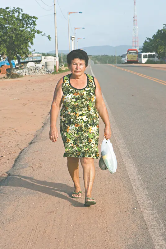 "Pra uma pessoa de idade ou pra quem tenha uma criança é um sofrimento. Fora que você tem que andar essa distância com medo, porque hoje ninguém sabe mais quem é que tá perto de você", lamenta a dona de casa Dionísia Sampaio. Ela acrescenta que outra dificuldade é atravessar a estrada por onde os ônibus agora passam.