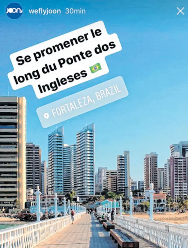 Legenda: Postagem foi veiculada no perfil da Joon no Instagram, no stories, com uma frase em francês que significa "passear ao longo da Ponte dos Ingleses" em português