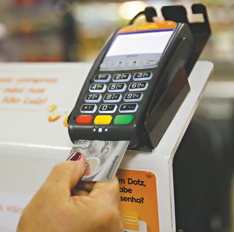 Legenda: Conforme pesquisa da Abecs, considerando a taxa mensal, os juros do rotativo do cartão de crédito caíram de 15,4% para 10,6%
