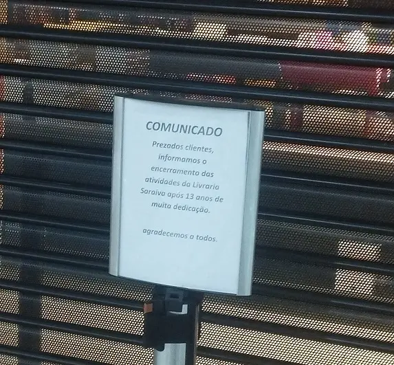 "Prezados clientes, informamos o encerramento das atividades da Livraria Saraiva após 13 anos de muita dedicação. Agradecemos a todos", diz o texto posicionado na porta da loja. A imagem com o aviso foi compartilhada nas redes sociais.
