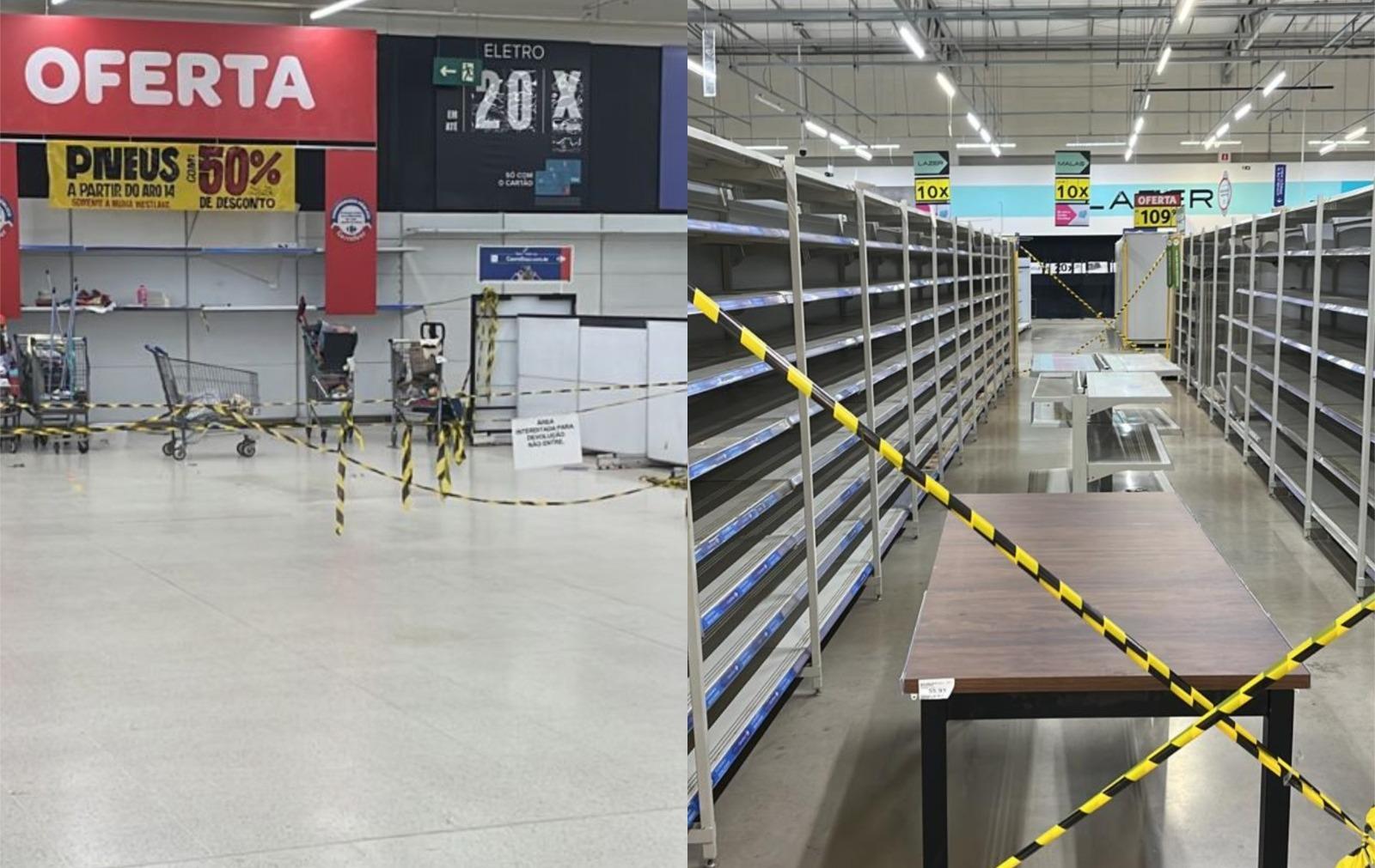 No estabelecimento, assim como na Maraponga, há muitas prateleiras esvaziadas e setores com acessos restritos apenas a funcionários do hipermercado. Descontos em produtos alimentícios e outros itens também podem ser observados.