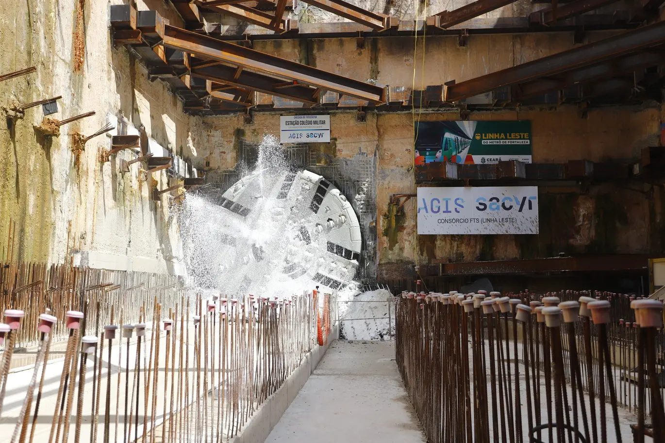 A tuneladora TBM 02 do Metrofor chegou nesta segunda-feira (12) à estação Colégio Militar. Ela vai passar por manutenções corretivas e deve voltar a operar dentro de três meses. Até o fim de 2025, a expectativa é de que o equipamento alcance a escavação até a estação Nunes Valente.