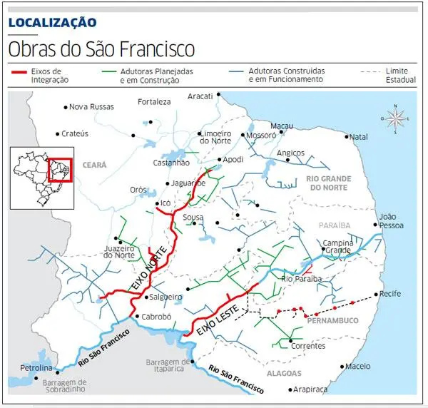 Teixeira e Cid Gomes também sobrevoarão os trechos de obras compreendidos entre os municípios de Brejo Santo e Mauriti, onde estão sendo construídas as barragens de Porcos, Cana Brava e Cipó. Às 10h, ambos irão vistoriar as obras da Meta 3 Norte, em Mauriti.