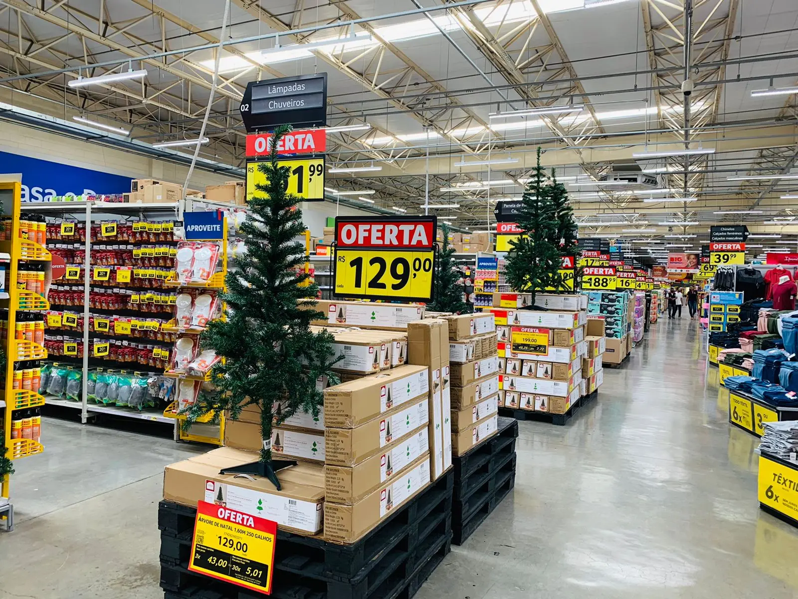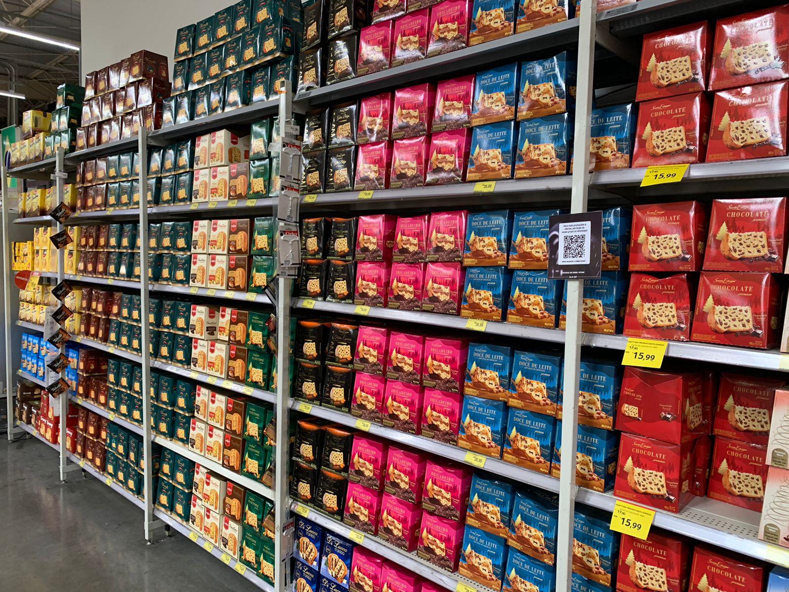 No entanto, a reportagem apurou que em uma das unidades da rede em Fortaleza já existe comercialização de panetones e enfeites, como árvores de Natal, como mostra a imagem abaixo.