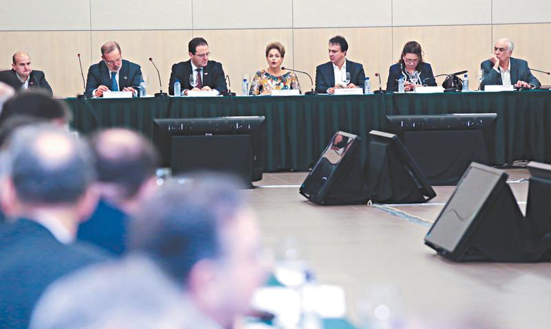 Legenda: Por duas horas e meia, a presidente Dilma Rousseff, juntamente com os ministros presentes ao evento, ouviu as demandas de representantes do setor produtivo cearense