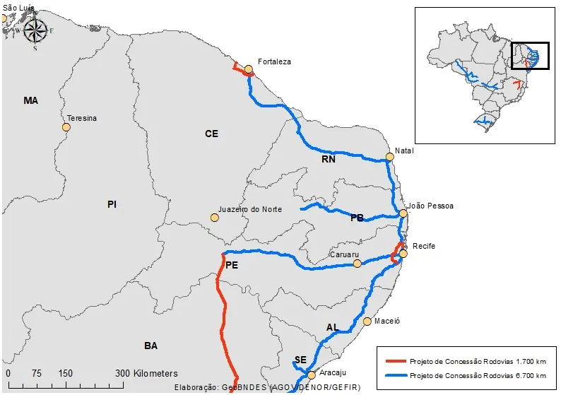 Os estudos liderados pelo banco incluem trechos da BR-222 entre Fortaleza e o Porto do Pecém, o Quarto Anel Viário e a BR-304 desde o entroncamento com a BR-116 seguindo até a divisa com o Rio Grande do Norte (RN), todas importantes rodovias para a logística de cargas.