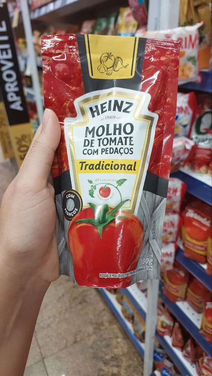 O molho de tomate Heinz teve redução de 40g do produto, o equivalente a 11,8%. O peso passou de 340g para 300g.